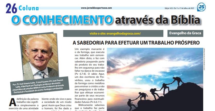 Por : Pr José Soares Leite – A definição da palavra trabalho não significa simplesmente o exercício de uma atividade que o homem executa a m de obter um resultado financeiro para o suprimento de suas necessidades pessoais e familiar.