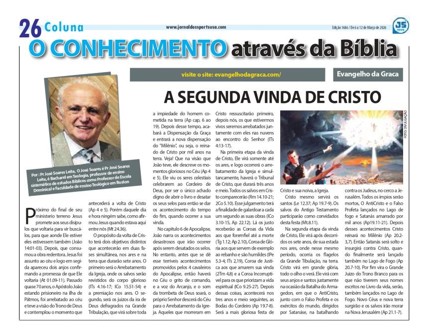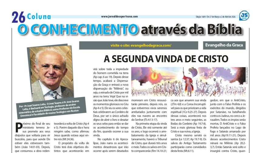 Por : José Soares Leite – Próximo do final de seu ministério terreno Jesus promete aos seus discípulos que voltaria para vir busca-los, para que aonde Ele estiver eles estivessem também (João 14:01-03). Depois que consumou a obra redentora, Jesus foi assunto ao céu e logo em seguida apareceu dois anjos confirmando a promessa de que Ele voltaria (At 01.09-11).