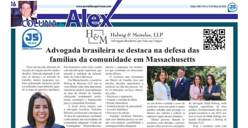 Em Massachusetts, o escritório Helwig & Meireles LLP tem se consolidado como uma importante referência jurídica, principalmente na área de Direito de Família, oferecendo atendimento profissional, estratégico e humanizado para a comunidade brasileira.