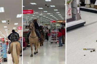 Cowboy Invade Loja Target a Cavalo em Dallas, Deixando Rastro de Confusão e Sujeira