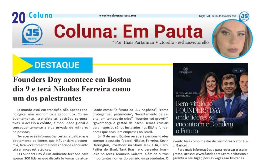 Em 9 de maio Boston receberá personalidades como:o deputado federal Nikolas Ferreira, Kevin Harrington, investidor no Shark Tank EUA, Carol Paiffer do Shark Tank Brasil e o vereador brasileiro no Texas, Mauricio Galante, além de outros importantes nomes do cenário empreendedor.