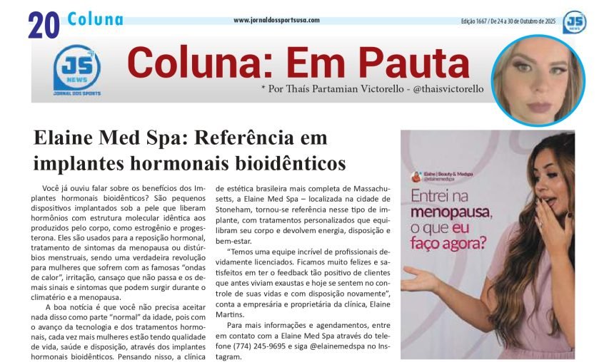 Pensando nisso, a clínica de estética brasileira mais completa de Massachusetts, a Elaine Med Spa – localizada na cidade de Stoneham, tornou-se referência nesse tipo de implante, com tratamentos personalizados que equilibram seu corpo e devolvem energia, disposição e bem-estar. “Temos uma equipe incrível de profissionais devidamente licenciados.