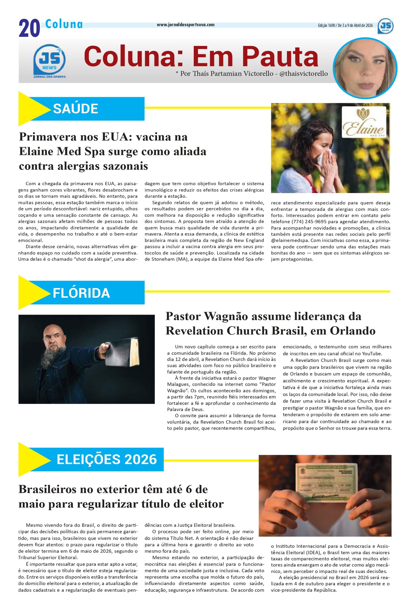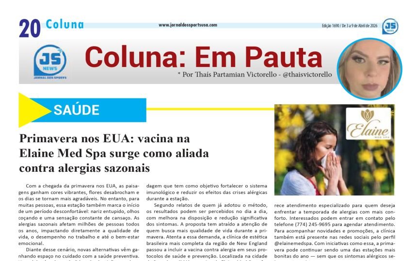 Atenta a essa demanda, a clínica de estética brasileira mais completa da região de New England passou a incluir a vacina contra alergia em seus protocolos de saúde e prevenção. Localizada na cidade de Stoneham (MA), a equipe da Elaine Med Spa oferece atendimento especializado para quem deseja enfrentar a temporada de alergias com mais conforto. Interessados podem entrar em contato pelo telefone (774) 245-9695 para agendar atendimento.