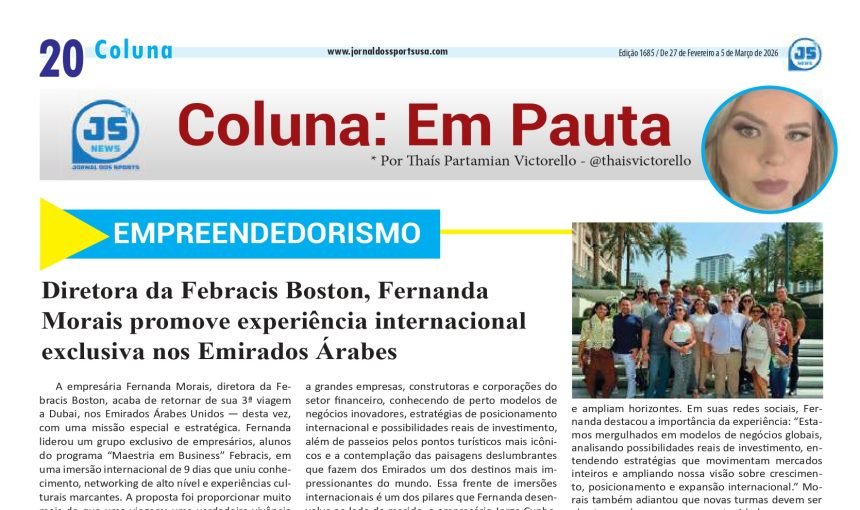 A empresária Fernanda Morais, diretora da Febracis Boston, acaba de retornar de sua 3ª viagem a Dubai, nos Emirados Árabes Unidos — desta vez, com uma missão especial e estratégica. Fernanda liderou um grupo exclusivo de empresários, alunos do programa “Maestria em Business” Febracis, em uma imersão internacional de 9 dias que uniu conhecimento, networking de alto nível e experiências culturais marcantes.
