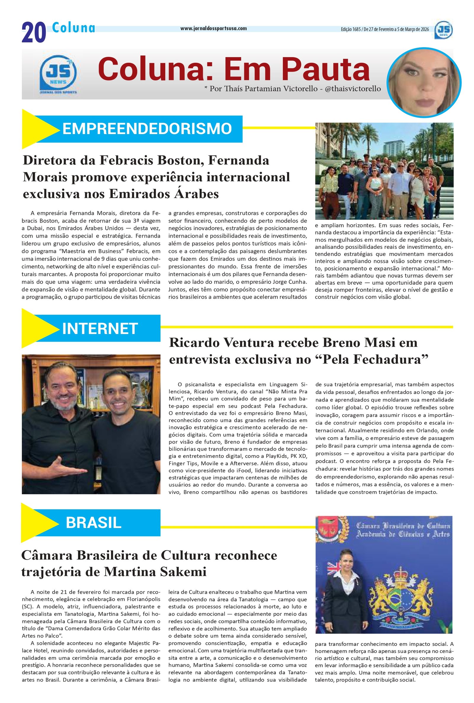 A proposta foi proporcionar muito mais do que uma viagem: uma verdadeira vivência de expansão de visão e mentalidade global. Durante a programação, o grupo participou de visitas técnicas a grandes empresas, construtoras e corporações do setor financeiro, conhecendo de perto modelos de negócios inovadores, estratégias de posicionamento internacional e possibilidades reais de investimento, além de passeios pelos pontos turísticos mais icônicos e a contemplação das paisagens deslumbrantes que fazem dos Emirados um dos destinos mais impressionantes do mundo. Essa frente de imersões internacionais é um dos pilares que Fernanda desenvolve ao lado do marido, o empresário Jorge Cunha. Juntos, eles têm como propósito conectar empresários brasileiros a ambientes que aceleram resultados e ampliam horizontes.