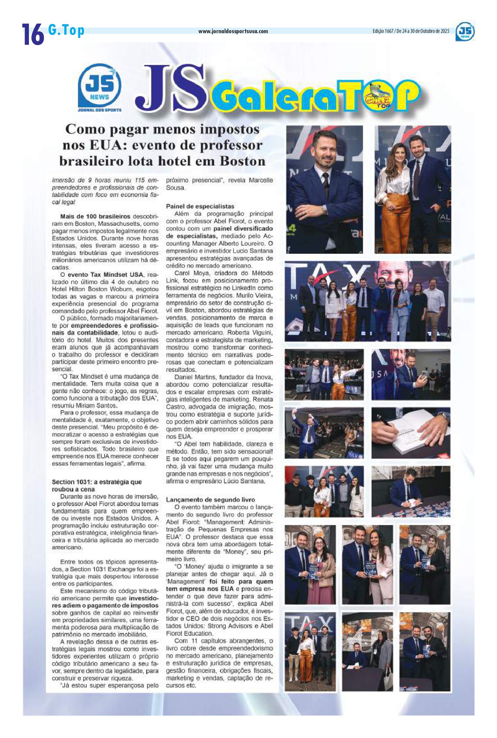 O evento Tax Mindset USA, realizado no último dia 4 de outubro no Hotel Hilton Boston Woburn, esgotou todas as vagas e marcou a primeira experiência presencial do programa comandado pelo professor Abel Fiorot.