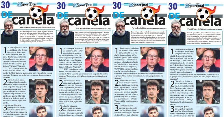 1 . A carruagem está virando abóbora. John Textor completou 60 anos no dia 30 de setembro e foi “coberto de glórias” pela torcida do Botafogo — com faixas e cartazes colocados em frente ao Estádio Nilton Santos que diziam: “Palhaço”, “Vigarista”, “171”, “2025: planejamento de merda”. Isso me lembra um samba de Almir Guineto que encaixa bem no protesto contra o gringo: “Bota mel na minha boca, me ama, depois deixa na saudade”.