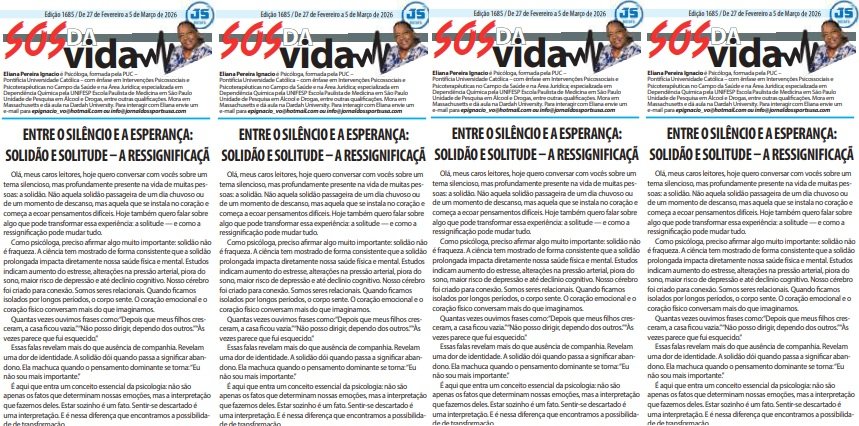 Considere: “Não sirvo mais para nada.” Pode tornar-se: “Minha fase mudou, mas minha experiência continua sendo importante.” Essa mudança altera a resposta emocional e sociológica do corpo. Reduz o peso interno e abre espaço para pequenas ações: participar de um grupo, telefonar para alguém, retomar um hobby, fortalecer a fé. Solidão adoece quando nos convence de que somos invisíveis. Solitude fortalece quando nos lembra que continuamos sendo alguém.