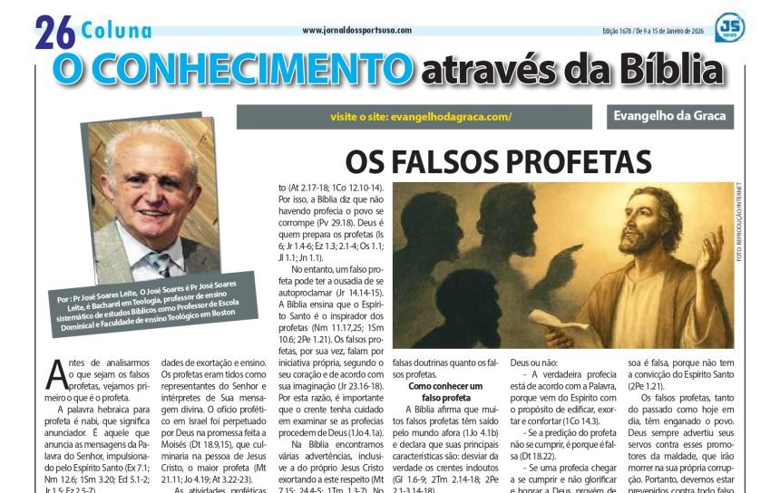 Por: José Soares Leite – Antes de analisarmos o que sejam os falsos profetas, vejamos, primeiro, o que é o Profeta. A Palavra hebraica para profeta é Nabi, que significa anunciador. É aquele que anuncia as mensagens da Palavra do Senhor, impulsionado pelo Espírito Santo (Ex 7.1, Nm 12.6, 15m 3.20, Ed 5.1-2, Jr 1.5, Ez 2.5-7).