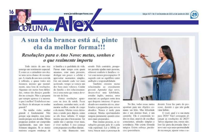 E você, qual é a sua meta para 2026? Você conseguiu alcançar as resoluções de 2025? Talvez algumas sim, outras não. Isso faz parte da jornada. Que o novo ano seja uma oportunidade de recomeçar, ajustar rotas e seguir em frente com fé, coragem e determinação.