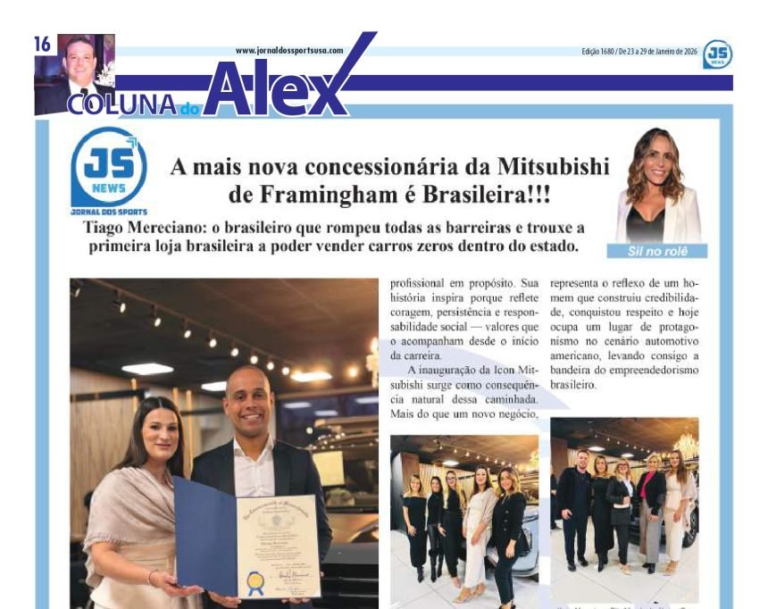 A inauguração da Icon Mitsubishi surge como consequência natural dessa caminhada. Mais do que um novo negócio, representa o reflexo de um homem que construiu credibilidade, conquistou respeito e hoje ocupa um lugar de protagonismo no cenário automotivo americano, levando consigo a bandeira do empreendedorismo brasileiro.